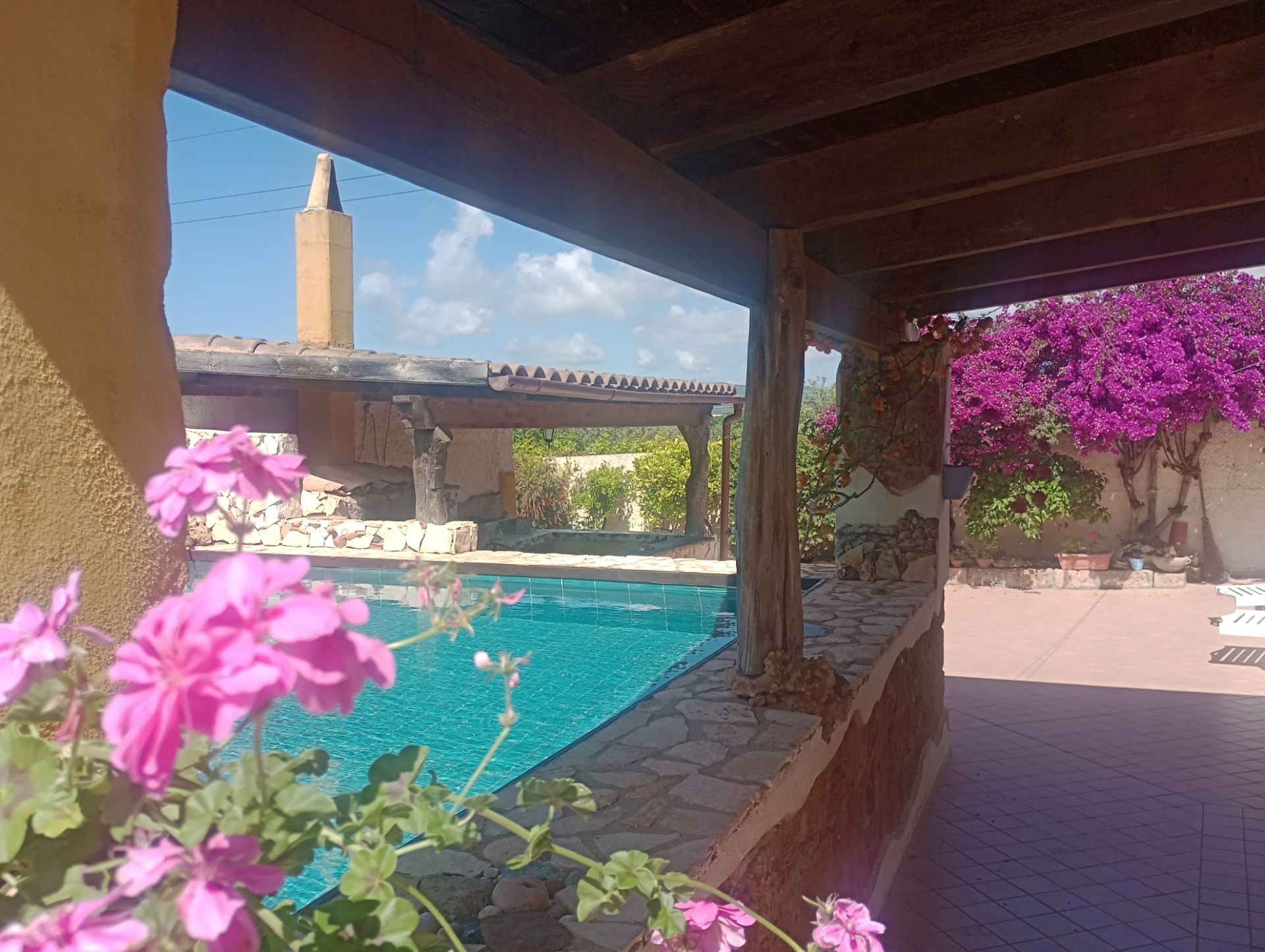 This is not a fancy modern villa with furniture made of glass and up-to-date design which looks more like made for Elle Decoration photo session than spending summer holidays with kids. This is a normal country house in a country area with its history, surrounded by nice green garden with grass, trees and hedges. The house is extremely cozy and comfortable despite being just a normal country house having couple dozen of years. It has everything you might need. Our favorite part is a shaded patio between the house and swimming pool where you may spend your time (dining or just drinking wine) at the same time watching your kids playing in the pool. What we finds extraordinary is that despite the house is in the authenitic rural area (vineyards, olive trees plantations, etc.) it is literally 5 minutes’ drive to the center of Alghero. Therefore it is extremally easy to make any kind of shopping or just to go for a dinner to Alghero.